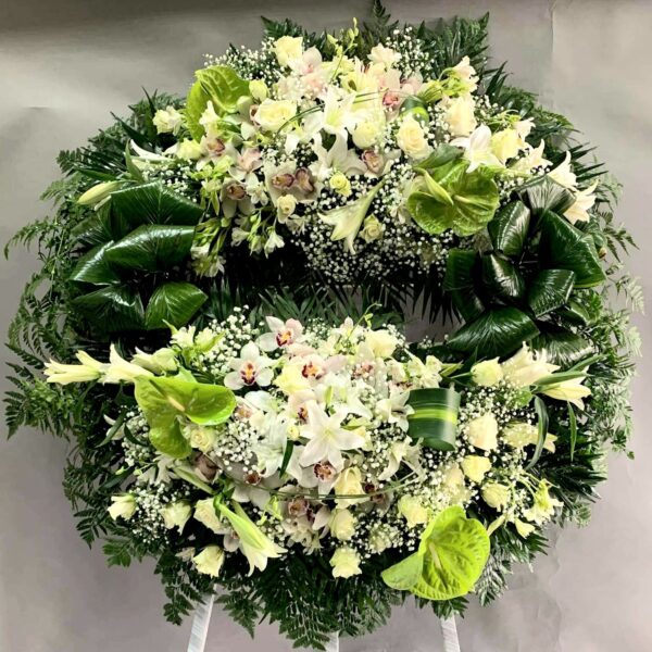 • Wheel-Shaped Funeral Wreath with Two Floral Arrangements