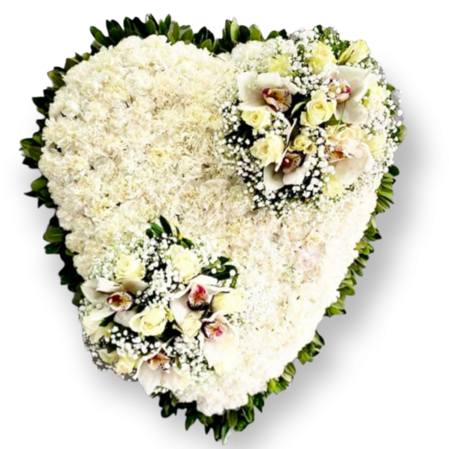 Η καρδιά συμβολίζει την αγάπη, τον δεσμό και τη μνήμη που μένει ζωντανή. Οι ορχιδέες, με τη διακριτική αλλά επιβλητική τους παρουσία, εκφράζουν την αιώνια ομορφιά και τη δύναμη. Αν επιθυμείς να αποχαιρετήσεις με σεμνότητα αλλά και μεγαλοπρέπεια, η καρδιά κηδείας με ορχιδέες και τριαντάφυλλα αποτελεί την ιδανική επιλογή.