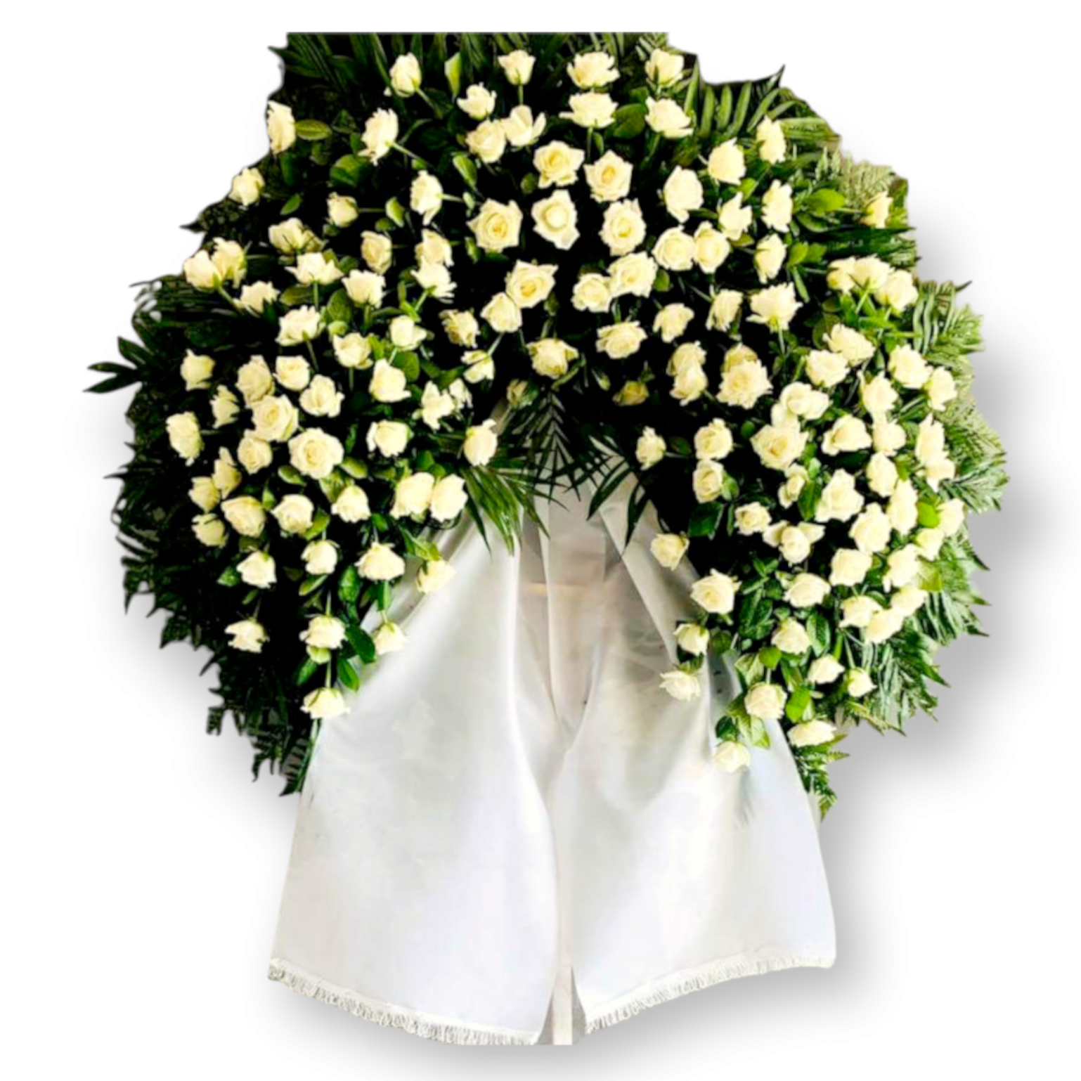 Στεφάνι κηδείας με λευκά τριαντάφυλλα – Εκφράστε τα συλλυπητήριά σας