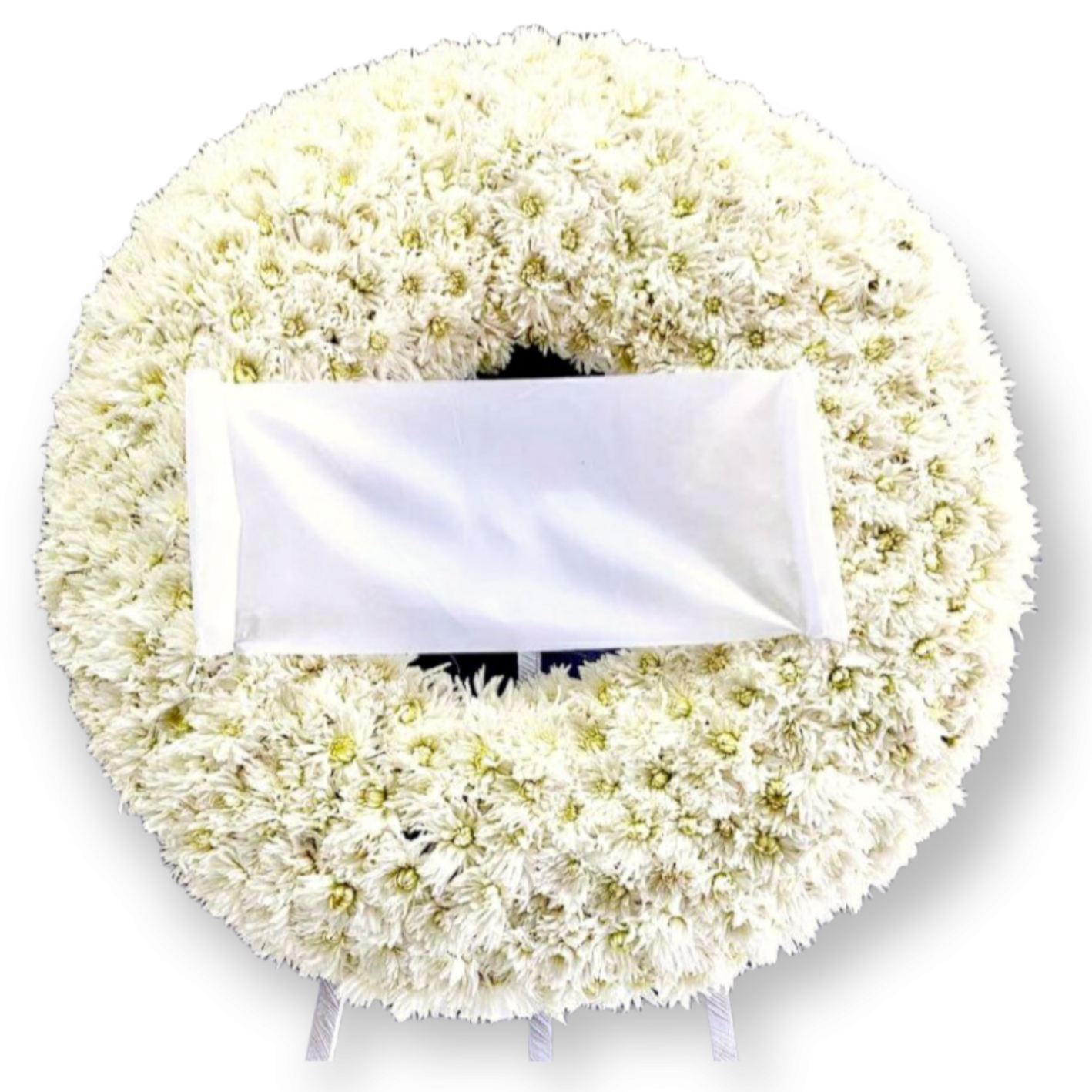 Τοποθετούμε το στεφάνι σε τρίποδη βάση, ενώ προσθέτουμε οριζόντια κορδέλα για προσωπικό μήνυμα. Επίσης, τα λευκά άνθη συμβολίζουν αγνότητα και αιώνια μνήμη. Γι’ αυτό το στεφάνι κηδείας ρόδα αποκτά ιδιαίτερη συναισθηματική αξία.
